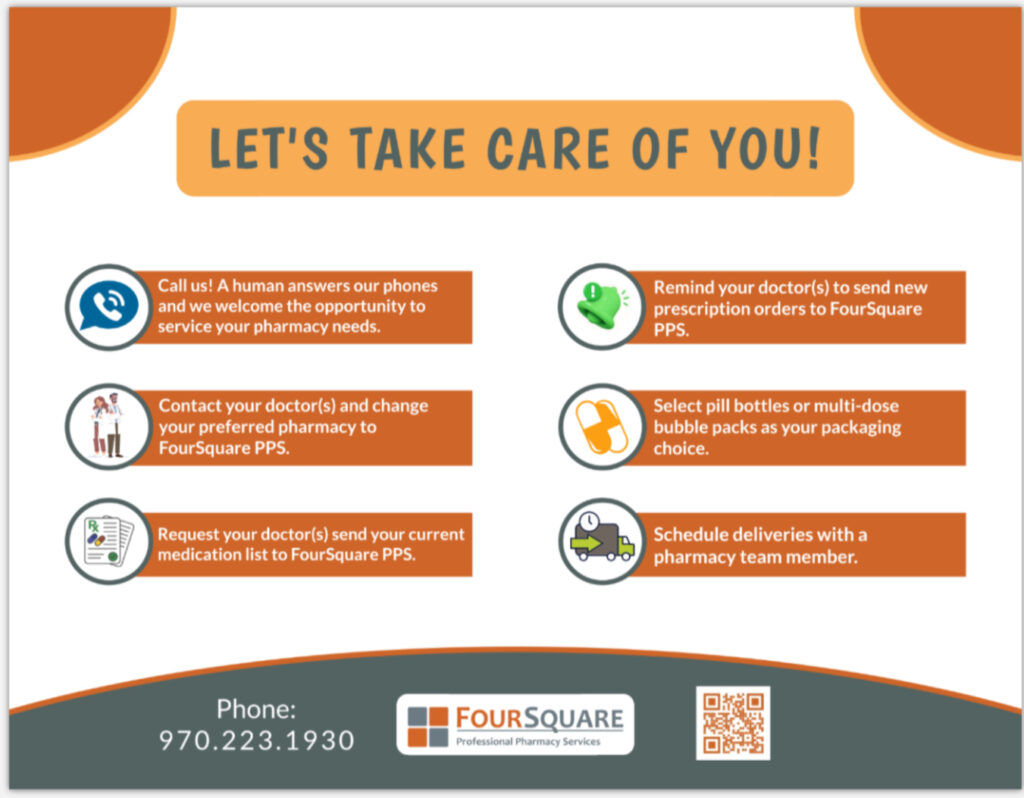 We work everyday toward providing seamless and coordinated prescription care to those who benefit from medication management assistance. We cordinate with clients, physicians, specialists, hospitalists, nurses, and caregivers to reduce medication regimen errors and misadventures. We want you to know what your prescribed medications are doing for you; be confident you are taking the right medications; and, know when to take them and when to stop. Contact us – we’d like to be your pharmacy!